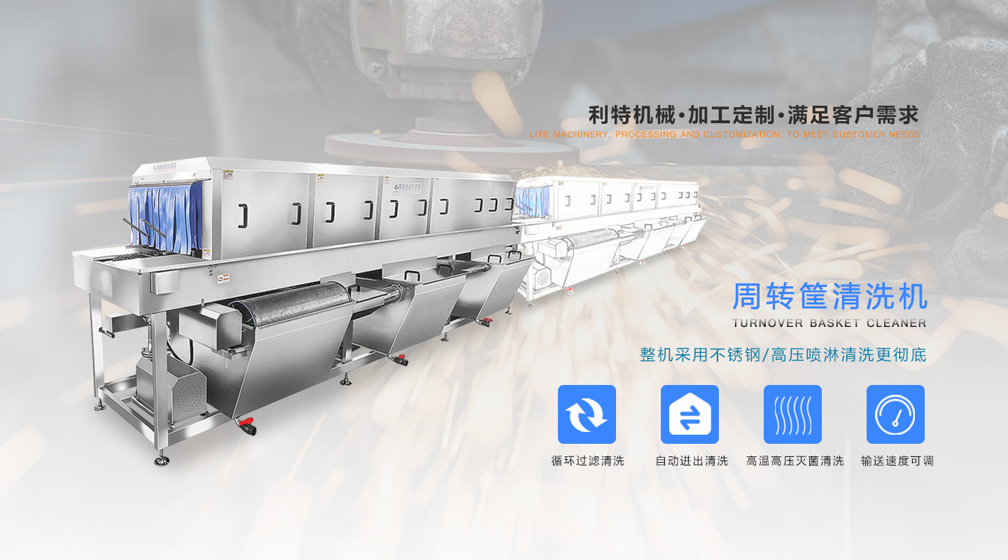 自動控溫、自動補水、高壓噴淋、高溫滅菌適用于各種周轉塑料筐、盤、箱、托盤、模具的清洗與消毒。